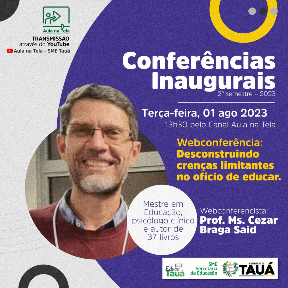 A Secretaria de Educação de Tauá realizará três conferências inaugurais marcando o início do 2º semestre letivo nas Escolas da Rede Municipal de Ensino.