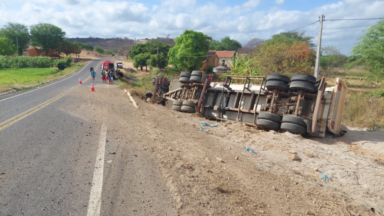 O tombamento de uma carreta Bi-trem Volvo, cor azul, placas AZP 1G18, com inscrição de Nova Santa/Paraná, na manhã de hoje (08/10), na CE-176, na zona rural de Arneiroz, provocou a morte do motorista Luiz Nivaldo Marcucci, 57 anos, que ficou preso as ferragens.