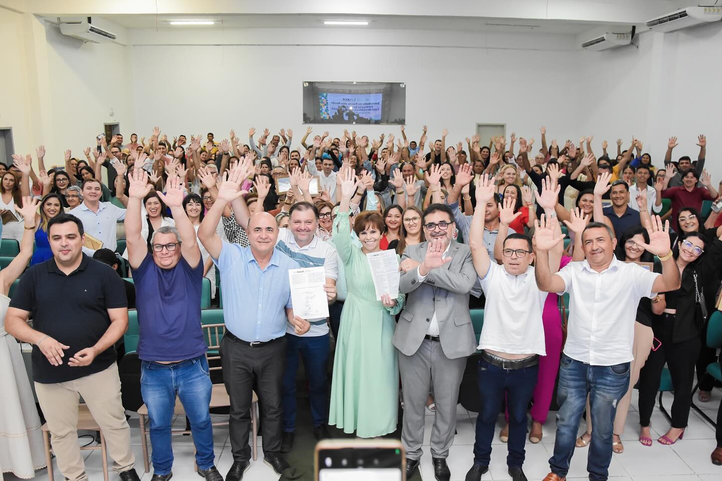 Em seguida, ocorreu a solenidade de posse dos novos gestores escolares. Os aprovados assinaram o Termo de Posse e receberam a Portaria de Nomeação.