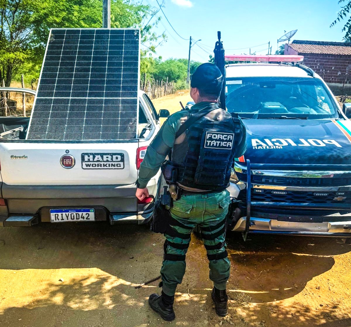 Policiais da Força Tática do 13º BPM recuperou na manhã de hoje (13/08), placas de energia solar furtadas na madrugada de ontem (12/08), em Tauá.