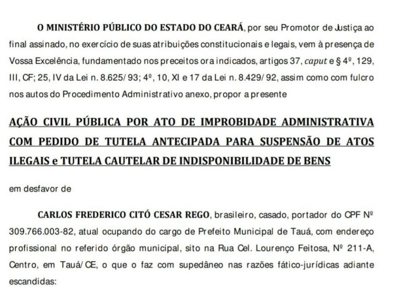Ação judicial contra a Prefeitura de Tauá