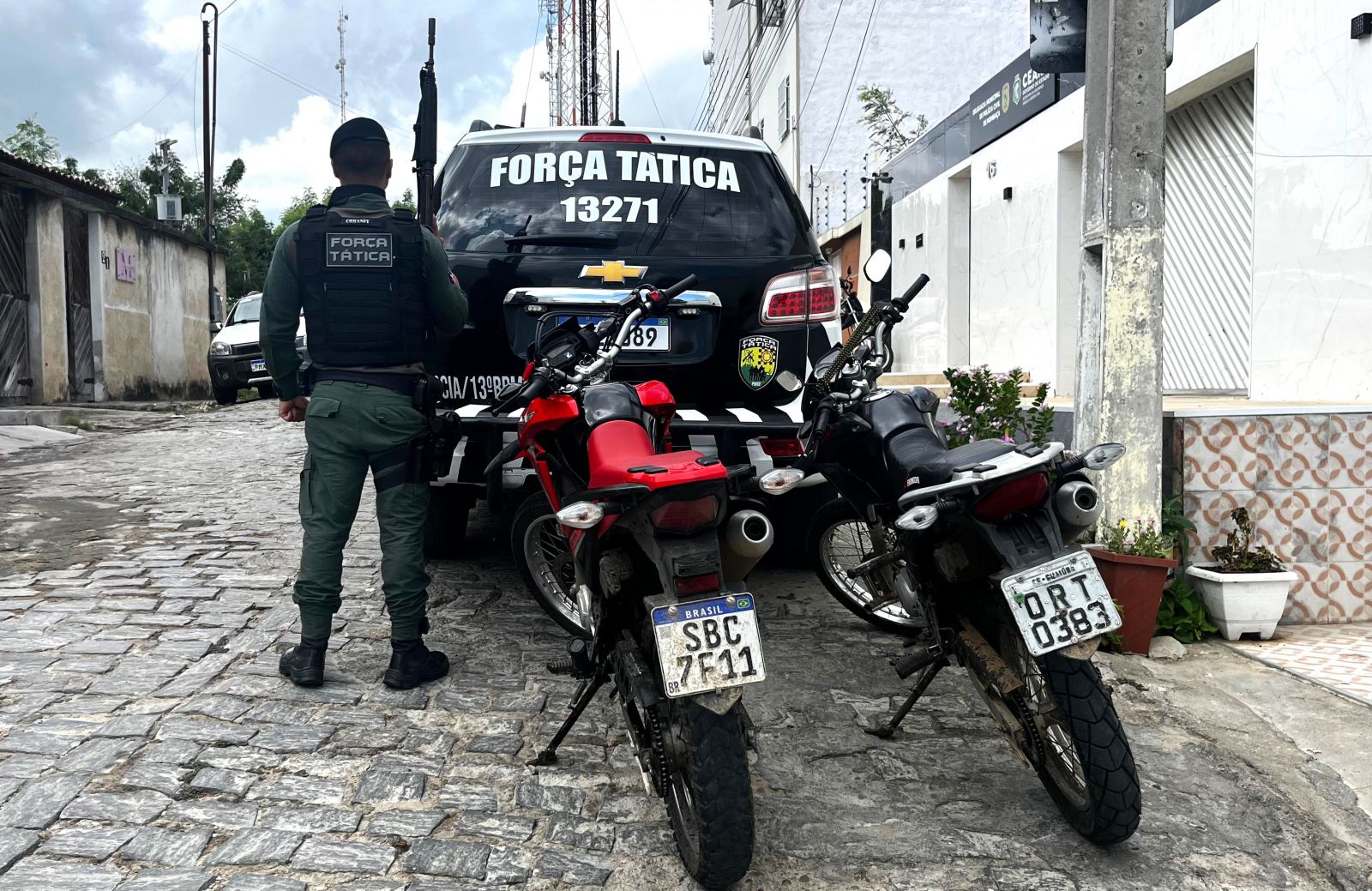 Por volta de 10h da manhã, a equipe Delta realizada patrulhamento na cidade de Mombaça, quando recebeu informações da inteligência do 13º BPM, sobre duas motocicletas, NXR BROS 160, ano 2024 e NXR BROS 150, ano 2013, com suspeitas de serem clonadas.