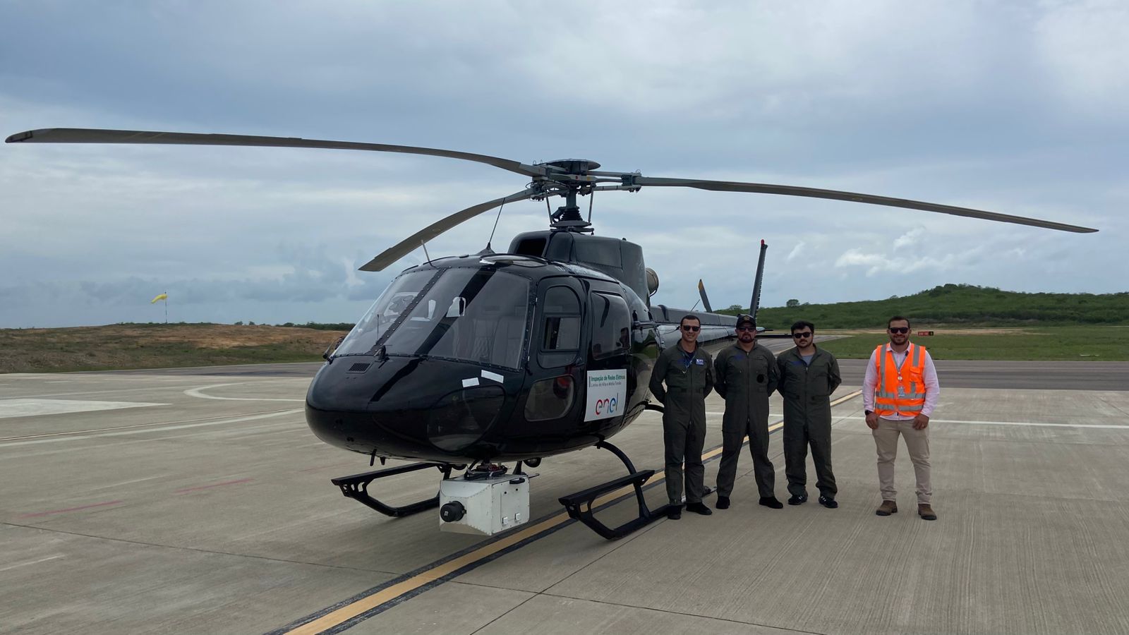 Já a câmera termográfica permite verificar a temperatura de conexões e equipamentos. Em terra, uma equipe da Enel recebe todas as informações geradas pelo helicóptero e, dessa forma, consegue realizar os serviços na rede com precisão. O helicóptero opera em altitude segura, garantindo a confiabilidade das manobras. Dentro da aeronave, a equipe é composta por um comandante especializado em serviços aéreos especiais e técnicos especialistas em LIDAR e termografia.