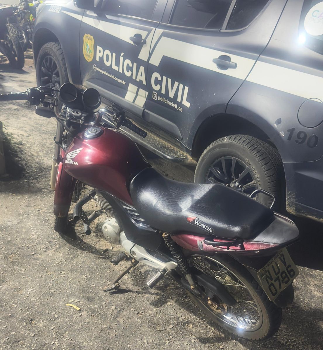 Uma moto Honda Fan, ano 2010/2011, cor vermelha, placa NUV-0796, com inscrição no município de Novo Oriente, com queixa de roubo, foi apreendida pelo CPRaio de Tauá, por volta de 22h na noite de ontem (07/02), na cidade de Quiterianópolis.