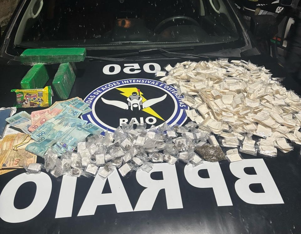 Dando continuidade às diligências na região, o restante da droga e o dinheiro foram apreendidos em um imóvel. Foram apreendidos 565 papelotes de cocaína e 69 balas e três tabletes de maconha, totalizando cerca de 3 kg de drogas.