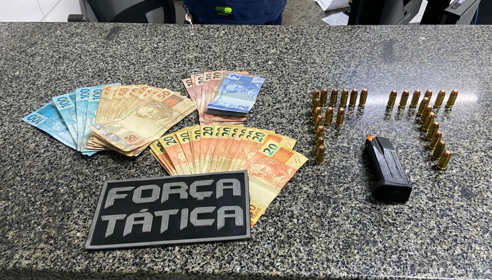 Após ser contido, o indivíduo identificado como Márcio José de Matos, 35 anos, presenciou busca na residência onde foram encontrados material de embalo de entorpecente, um carregador de pistola, 27 munições, além de dinheiro em espécie. Após a coleta do material o detido apresentou sinais de mal estar e informou ter consumido cocaína antes da chegada das equipes, sendo prontamente socorrido ao hospital.