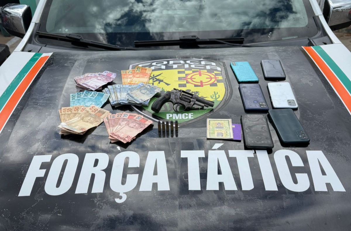 Antônio Francisco Pinheiro Maia, 28 anos, portava um revólver calibre 32, com 5 munições intactas. Na casa, os policiais também apreenderam 6 celulares e uma quantia de R$ 1.592,00 em espécie. Com as outras pessoas que se encontravam na residência nada de ilícito foi encontrado.