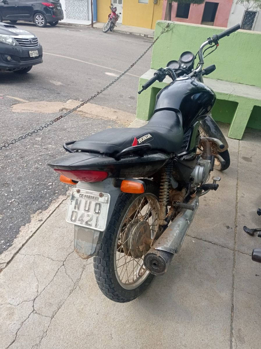 Policiais do CPRaio de Tauá foram acionados por volta das 15:30h de hoje(22), para a Rua João Rufino, altura do número 33, no Bairro Alto Nelândia, onde uma moto Honda Fan ES CG 125, cor preta, ano 2010, placa NUO 0421-Parambu.