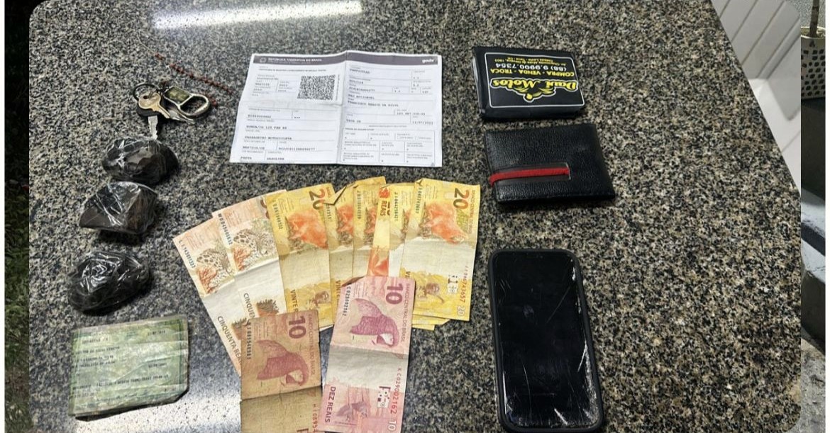 José Lailton da Silva Leonardo e Geovana Cristina Fernandes de Sousa, foram conduzidos para a Delegacia Regional de Policia Civil e apresentado ao delegado Talys Regis Melo da Silva. Foram apreendidos também, a motoci, um celular do tipo iPhone e a quantia de R$ 240,00 reais trocado. O casal apresentava escoriações leves provocadas pela queda durante abordagem.
