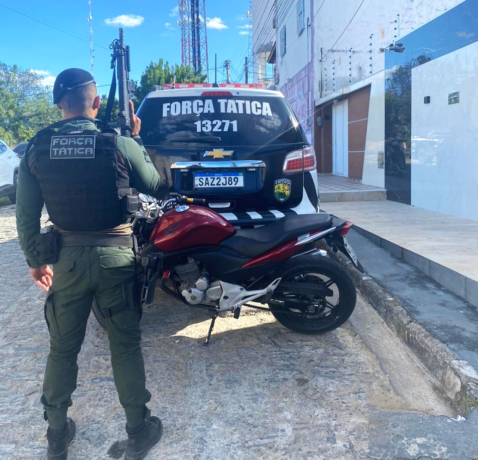 A Equipe BRAVO da Força Tática do 13º BPM sediado em Tauá, avistou o veículo estacionado e fez uma averiguação, sendo constatados indícios de adulteração dos números de chassi e motor.