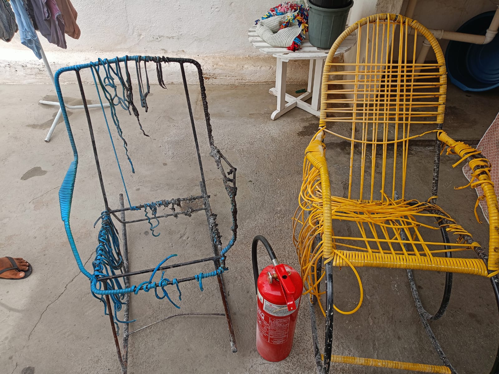Duas cadeiras que se encontravam ao lado também foram atingidas pelas chamas.