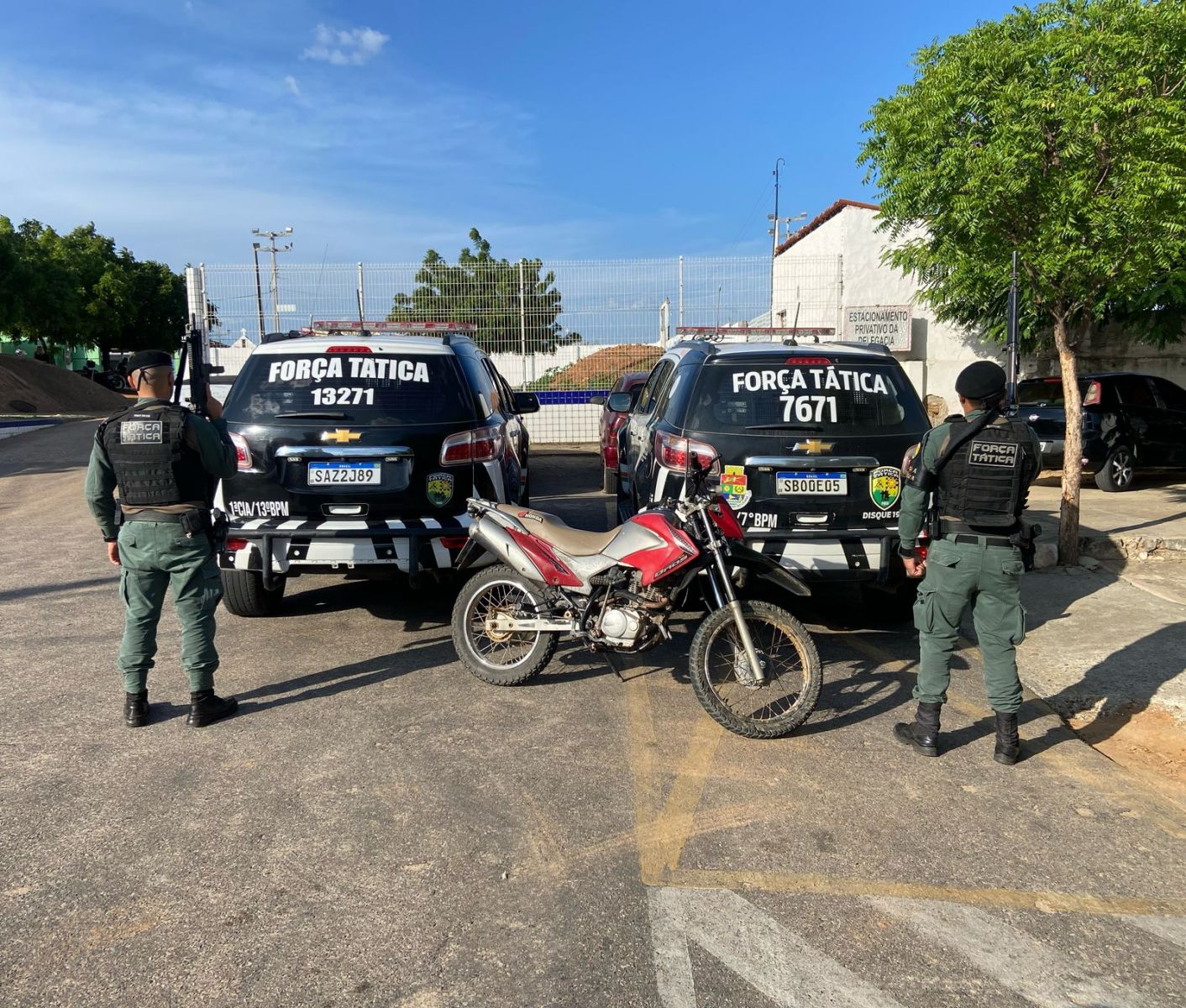 Por volta de 15h30, as composições realizavam patrulhamento com abordagens e identificação veicular, quando encontraram uma motocicleta Honda Bros NXR 150, cor vermelha, placa NRD-6190, com inscrição de Fortaleza, estacionada no Posto União, às margens da CE-187.