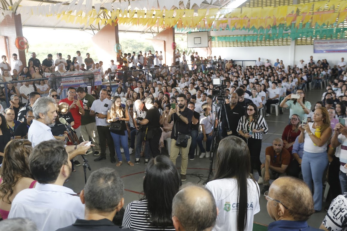O governador Elmano de Freitas enfatizou a alegria de poder efetivar esse tipo de política pública, que promove desenvolvimento e igualdade para os estudantes da escola pública cearense.
