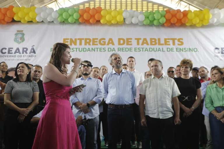 “Eu tenho um orgulho danado de encontrar com a nossa juventude. Isso não é da boca pra fora. Anos atrás, o Ceará, de 27 estados ficava em 24º ou 23º lugar; hoje o Ceará é o 3º lugar no ranking de escola pública do País”, comentou, em referência ao desempenho do Ensino Médio estadual no Ideb 2023, o mais recente. “Com essa entrega de tablets, estamos buscando aprimorar a qualidade das nossas escolas, para vocês se engajarem, se comunicarem. Para que cada um alcance os seus sonhos”, ressaltou o governador.