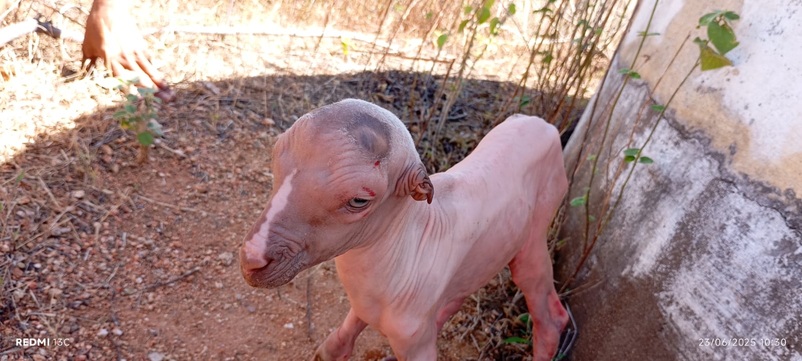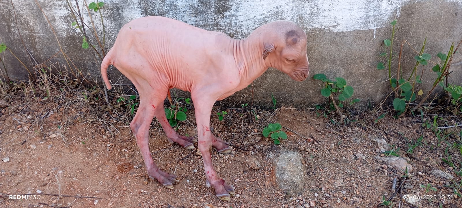 Um cabrito nasceu totalmente sem pelos na zona rural do município de Arneiroz. O caso chamou a atenção dos moradores da localidade de Agrovila.