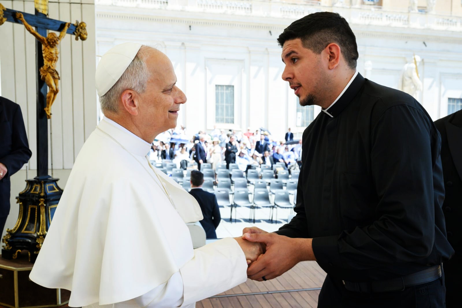 Papa Leão XIV e Padre Thallys da Diocese de Crateús, durante encontro em Roma