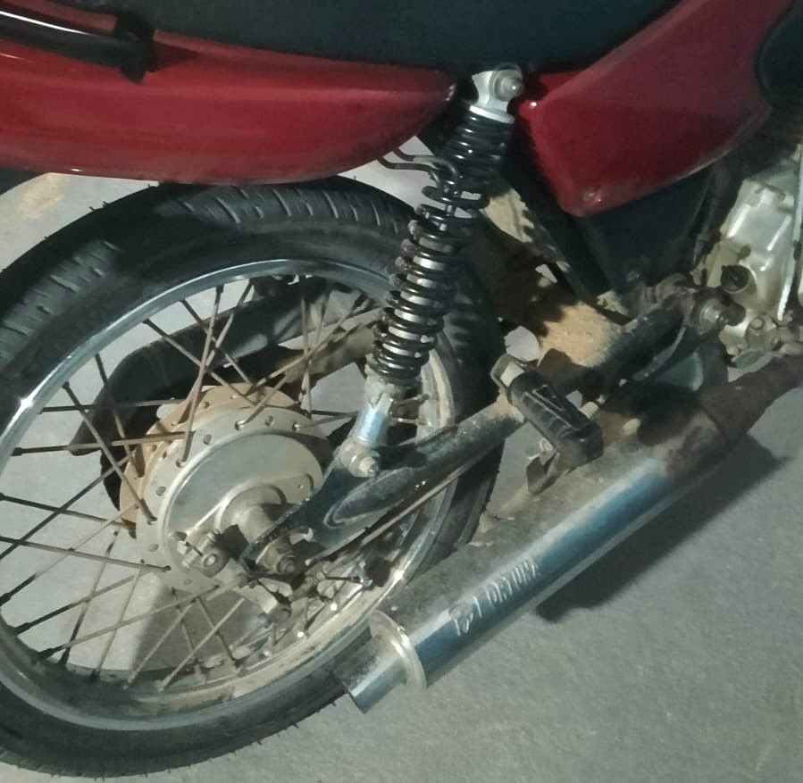Uma moto Honda CG Titan 125, cor vermelha, ano 2003, placa HXH-1445, com inscrição de Tauá, que estava com a descarga adulterada, foi apreendida pela Guarda Civil Municipal de Tauá.