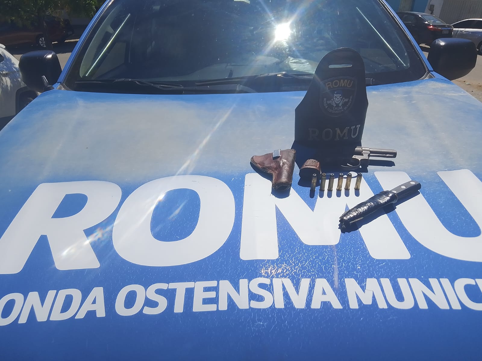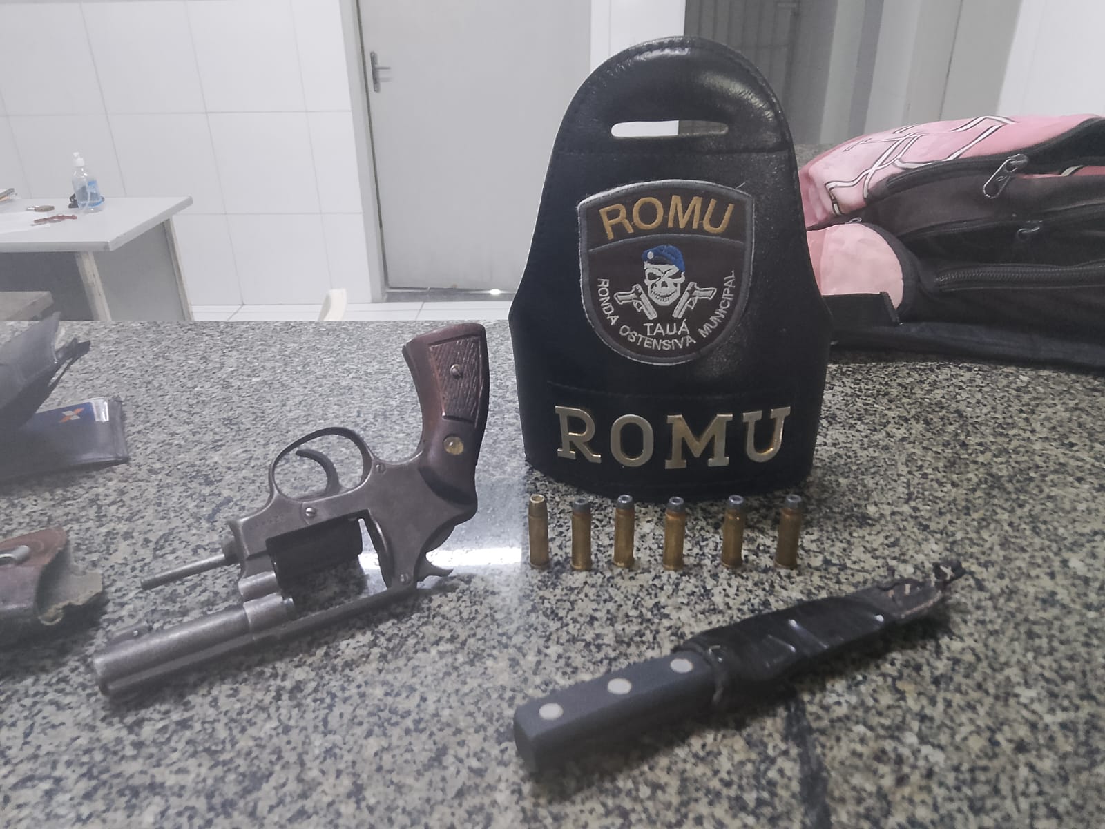 Um homem armado de revólver e faca foi flagrado pela equipe CHARLIE do ROMU da Guarda Civil Municipal em Tauá.