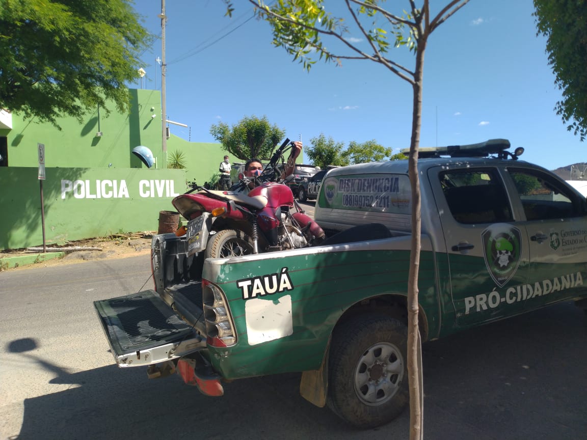 Ao averiguarem a situação do veículo, os agentes constataram que era a moto furtada em Arneiroz e a conduziram para a Delegacia Regional de Polícia Civil.
