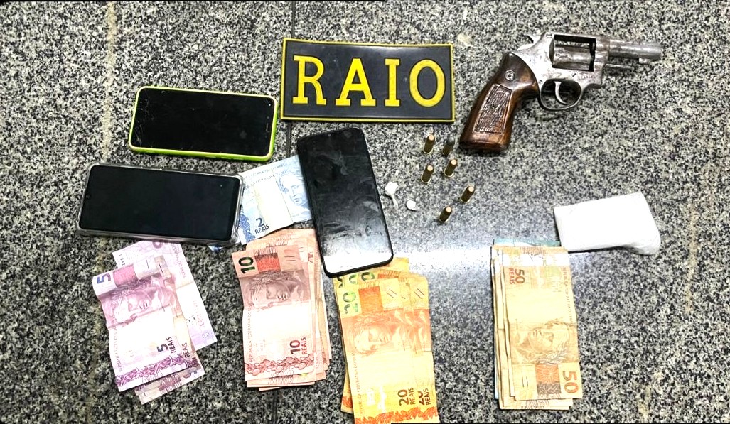 No imóvel, foram encontrados um revólver cal 38, a quantia de R$ 1.066,00, três celulares e duas trouxinhas de cocaína. Francisco Hugo Pereira Gomes, 19 anos, conhecido como Huguinho, assumiu a posse do revólver e alegou que a droga era para consumo. Ele foi conduzido à Delegacia Seccional da Polícia Civil de Tauá e autuado em flagrante pelo Delegado Iranildo da Silva Lima, no Art. 180, do Código Penal, Art. 12, da Lei nº 10.826/2003 (Estatuto do Desarmamento) e no Art. 28, da Lei nº 11.343/2006 (Lei de Drogas).