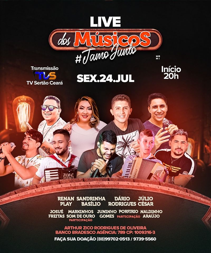 Durante a Live, estarão se apresentando, Renan Play, Sandrinha Basílio, Dário Rodrigues, Josué Freitas, Juninho Gomes, Naldinho Araújo e as participações de Markinhos Som de Ouro e Porfírio do Acordeon.