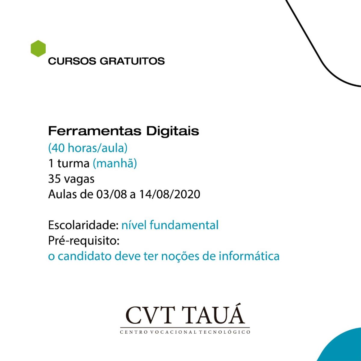 Estão abertas até esta quarta-feira(29), as inscrições para o Curso Ferramentas Digitais, promovido pelo Instituto Centec, por meio do Centro Vocacional Tecnológico de Tauá.