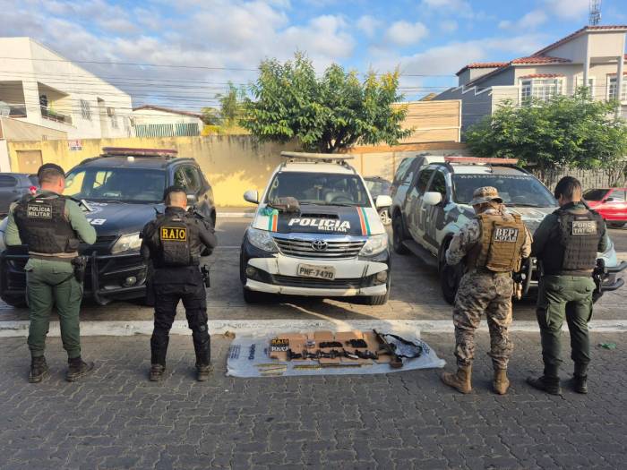 Uma equipe do 10º Batalhão Policial Militar (10º BPM) recebeu informações a respeito da presença de pessoas em conduta suspeita nas imediações de um reservatório. Os policiais militares diligenciaram e conseguiram localizar sete espingardas, sendo seis artesanais e uma sétima. Além das armas, foram apreendidas munições e pólvora nas imediações.