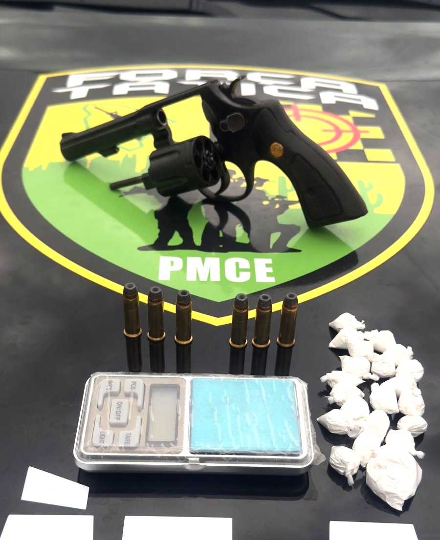 A Polícia Militar efetuou uma prisão por porte ilegal de arma, apreendeu drogas e celulares, em Tauá.