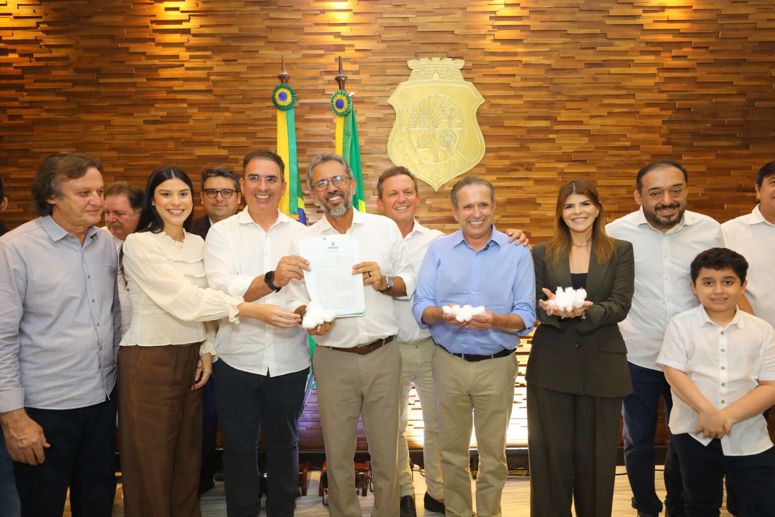 O ato aconteceu durante um evento realizado no Palácio da Abolição, em Fortaleza, na tarde desta quarta-feira (21), e contou, ainda, com a presença do secretário do Desenvolvimento Econômico, Domingos Filho, além de representantes de órgãos, como a Empresa Brasileira de Pesquisa Agropecuária (Embrapa), a Associação dos Produtores de Algodão do Ceará (APAECE) e demais autoridades. Prefeitos de municípios com histórico e potencial para a cultura também estiveram presentes.