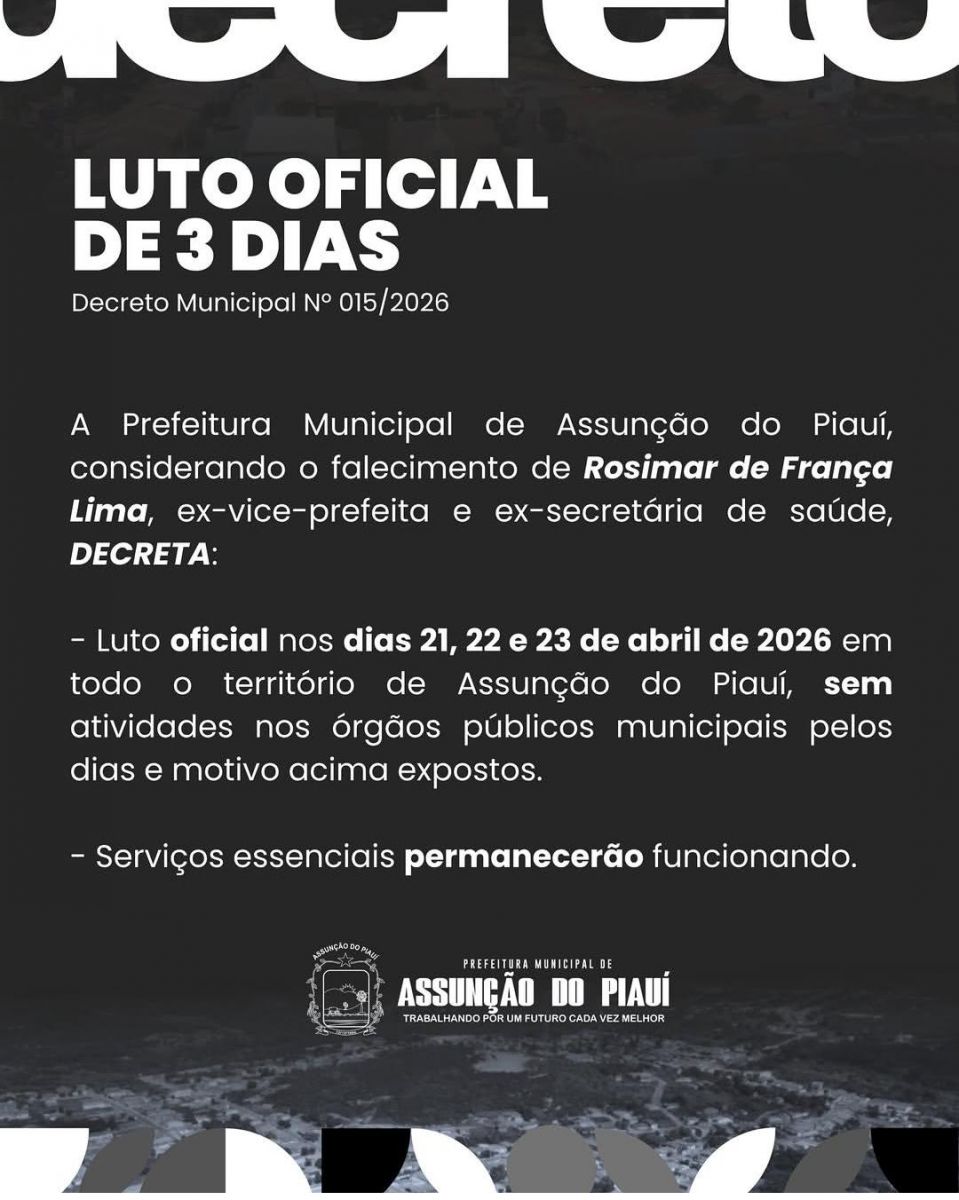 A Prefeitura de Assunção decretou Luto Oficial de 3 dias pela morte de Rosimar.