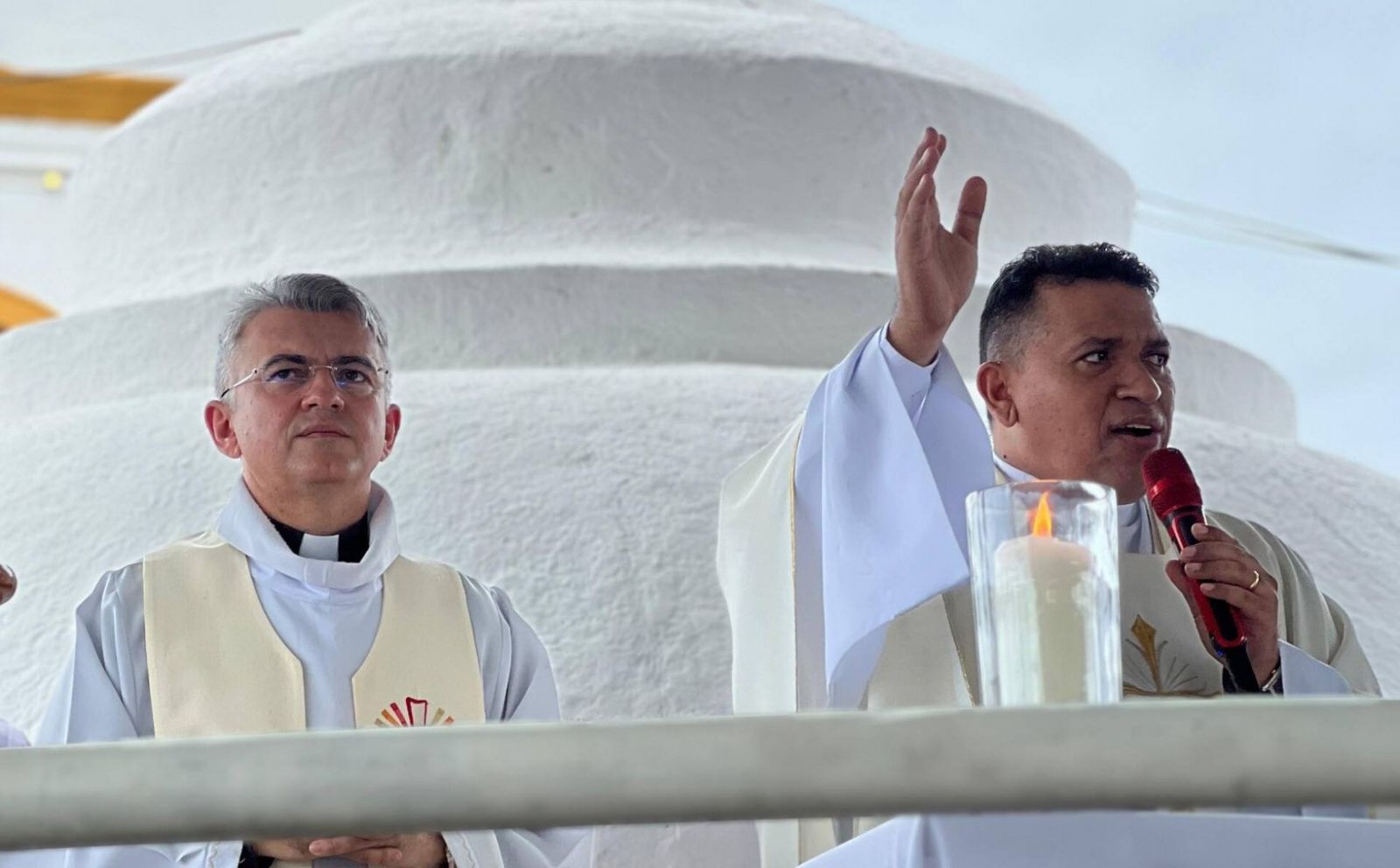 Os padres Antônio José e Aurenilson, da Paróquia de Nossa Senhora do Rosário, celebraram a última Missa dos festejos.