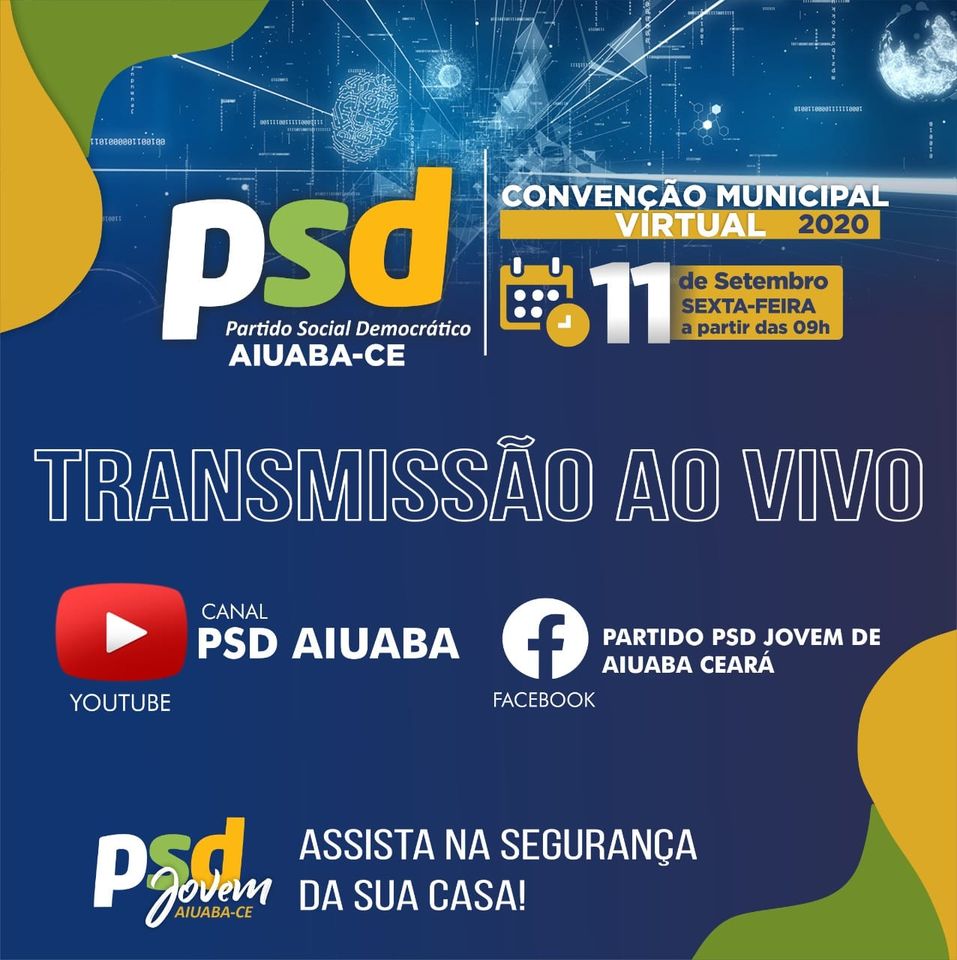 Como não é permitido fazer aglomerações, o evento será transmitido pelo YouTube e Facebook do PSD de Aiuaba.