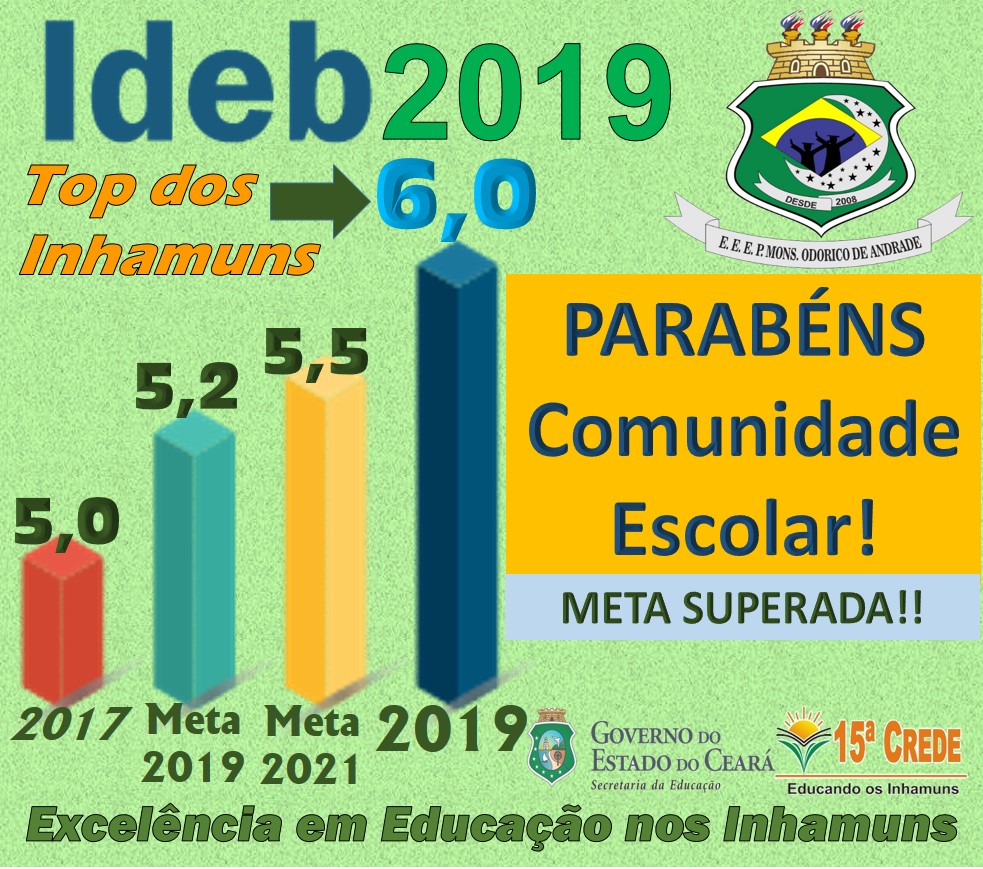Aqui na região dos Inhamuns, as escolas estaduais tiveram desempenho muito positivo. A EEEP Monsenhor Odorico de Andrade, localizada no município de Tauá, têm apresentado um desempenho crescente, superando todas as metas estabelecidas pela SEDUC. Em 2017, a escola estadual de educação profissional, avançou para a nota 5,0. Para 2019, a meta era 5,2. No resultado divulgado esta semana, a EEEP Monsenhor Odorico de Andrade chgou a nota 6,0. Superada a meta de 2021 que seria 5,5.