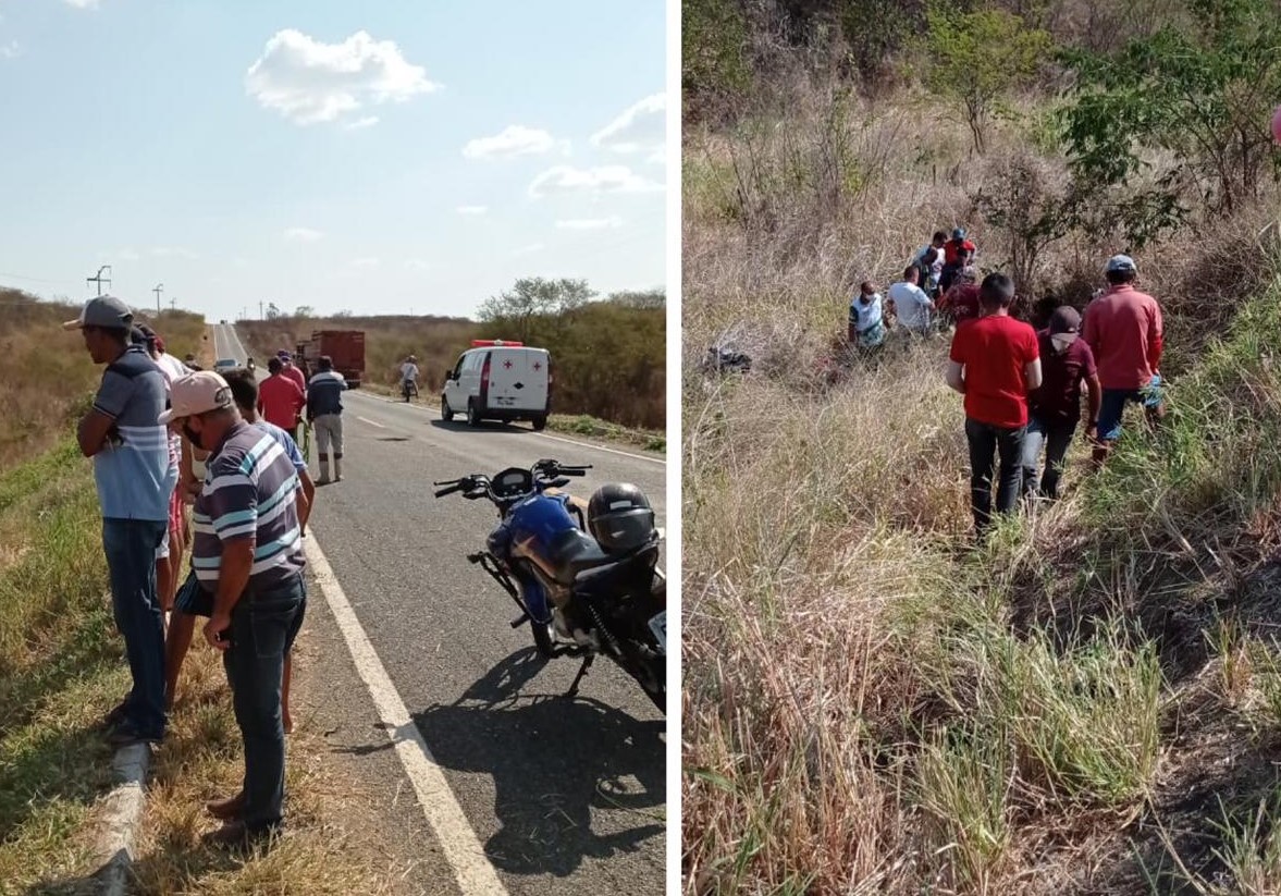 Um acidente de moto na CE-363(Mombaça-Taua) provocou a morte de uma mulher e outra saiu ferida na tarde desta quarta-feira(30), a altura da vila dos Bujões, na zona rural do município. As vítimas trafegavam em uma Honda Biz, que desceu uma ribanceira.