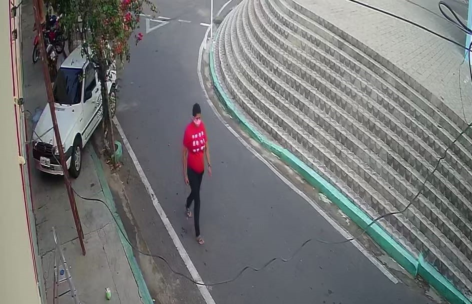 Imagens de uma câmera de vigilância eletrônica mostram as suspeitas andando em uma rua ao lado da Igreja, no centro de Arneiroz.