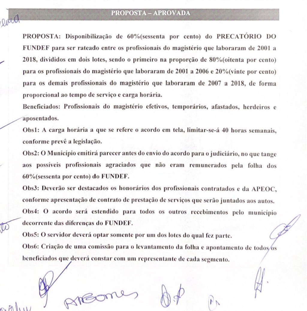 Veja a proposta aprovada para o rateio dos 60% dos precatórios do Fundef de Tauá