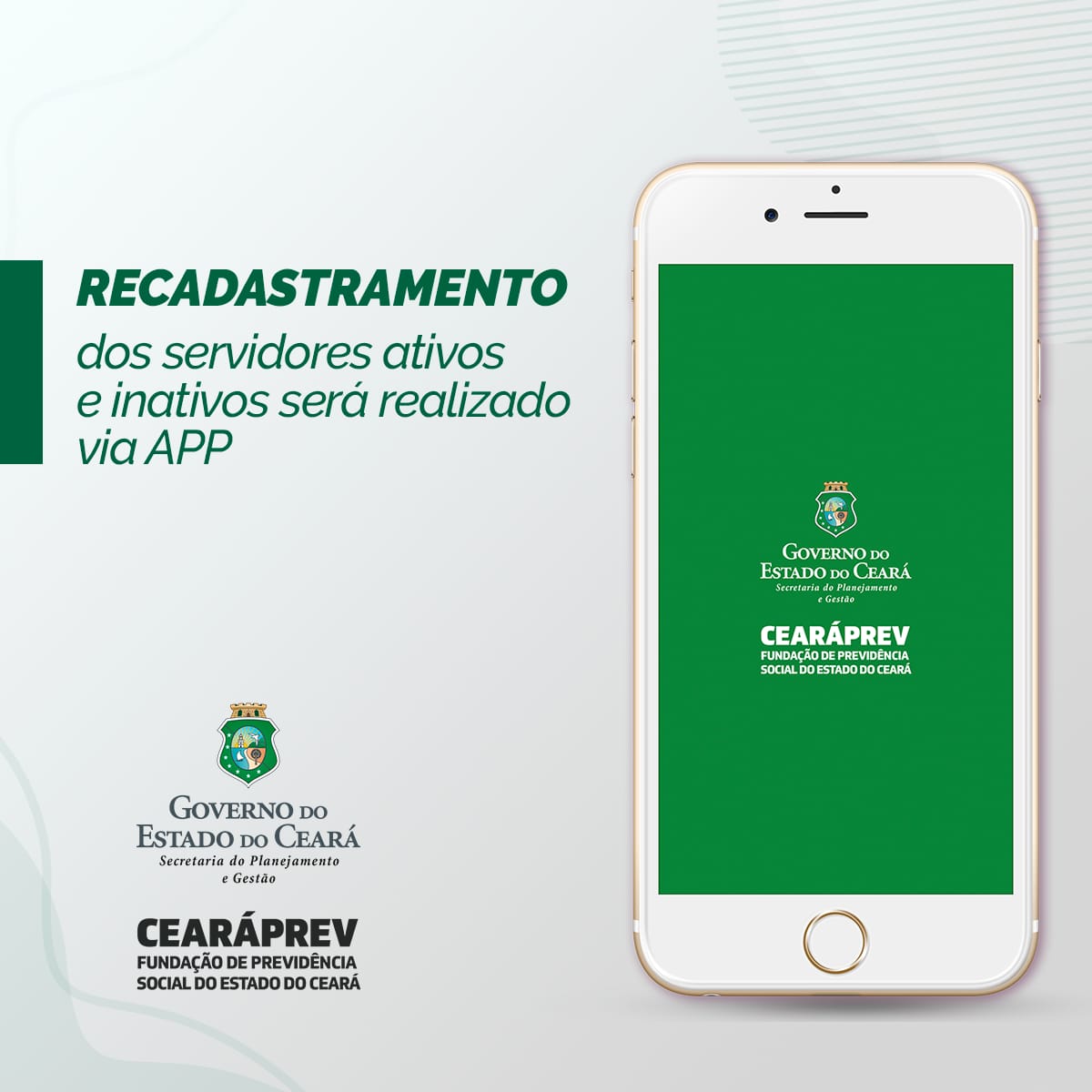 O recadastramento e prova de vida antes realizados nas agências do Bradesco e de responsabilidade da Secretaria de Planejamento e Gestão (Seplag) passa a ser realizado de forma virtual por meio do aplicativo Cearáprev On-line, gerido pela Fundação de Previdência Social do Estado do Ceará (Cearáprev) vinculada à Secretaria de Planejamento e Gestão (Seplag).