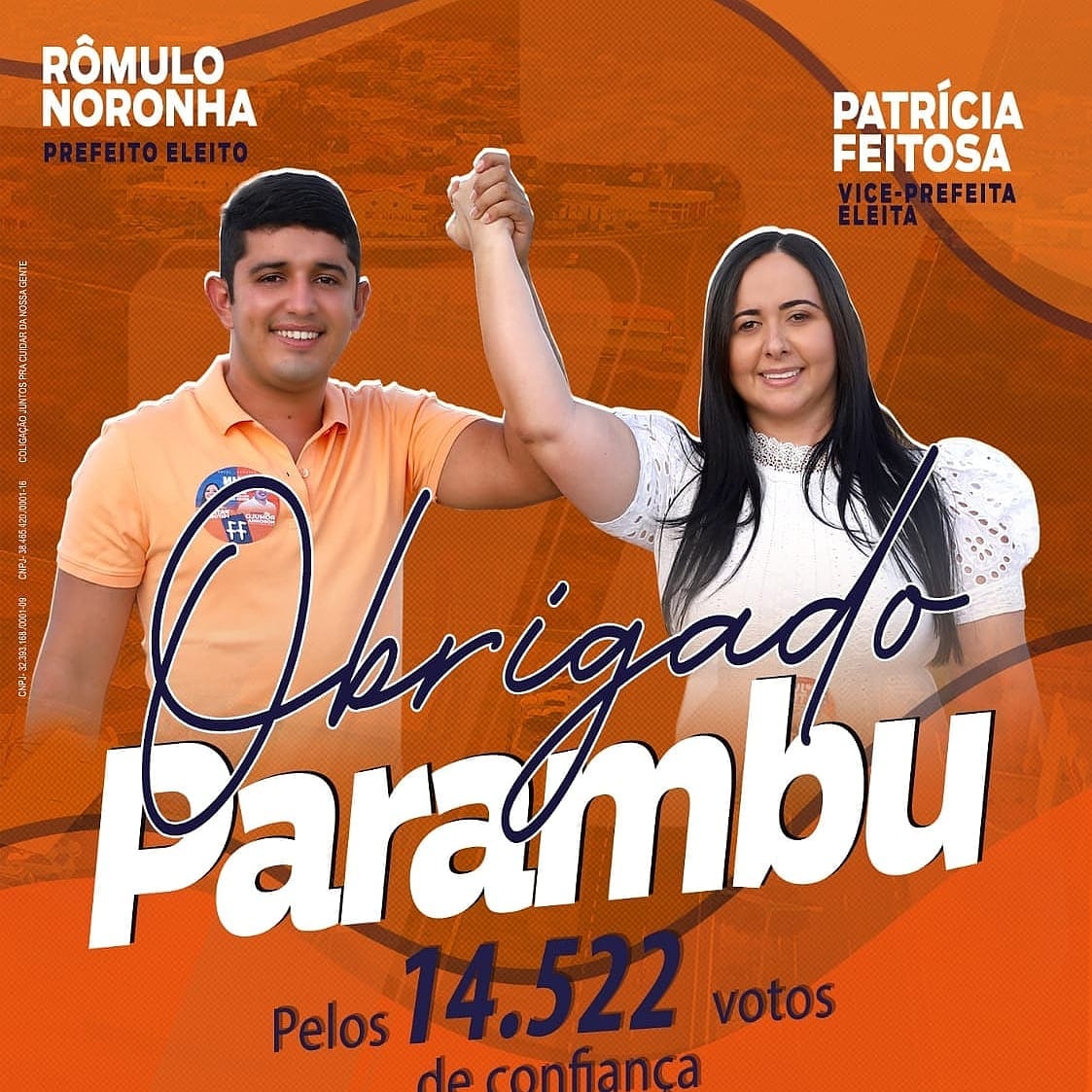 O jovem Rômulo Noronha(Solidariedade) foi eleito Prefeito do Município de Parambu com 70,42% dos votos nas eleições realizadas neste domingo(16), confirmando a hegemonia política do grupo liderado pelo Dep. Federal Genecias Noronha.