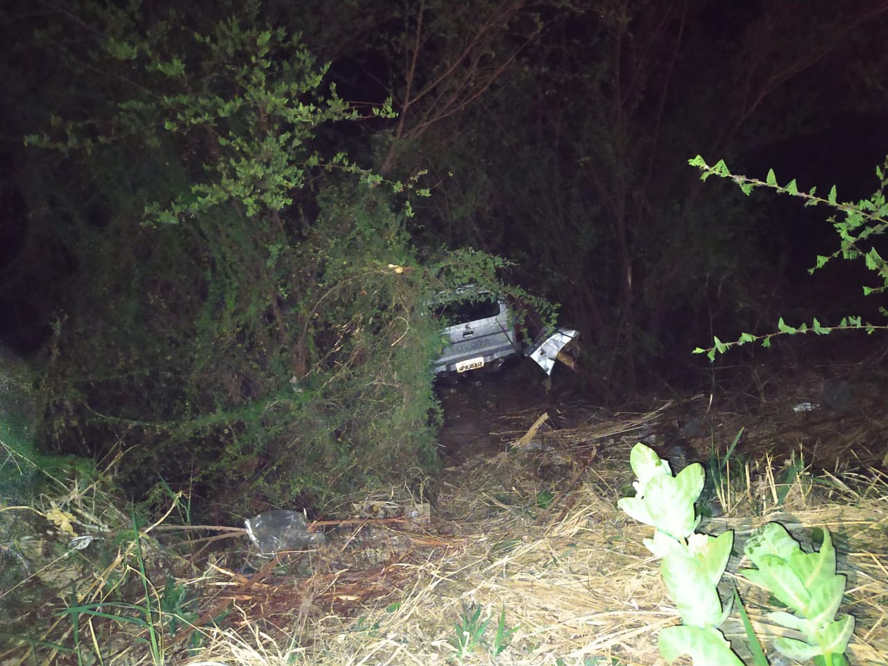 Com o impacto, a camioneta Hilux desceu um aterro de aproximadamente 5 metros de altura