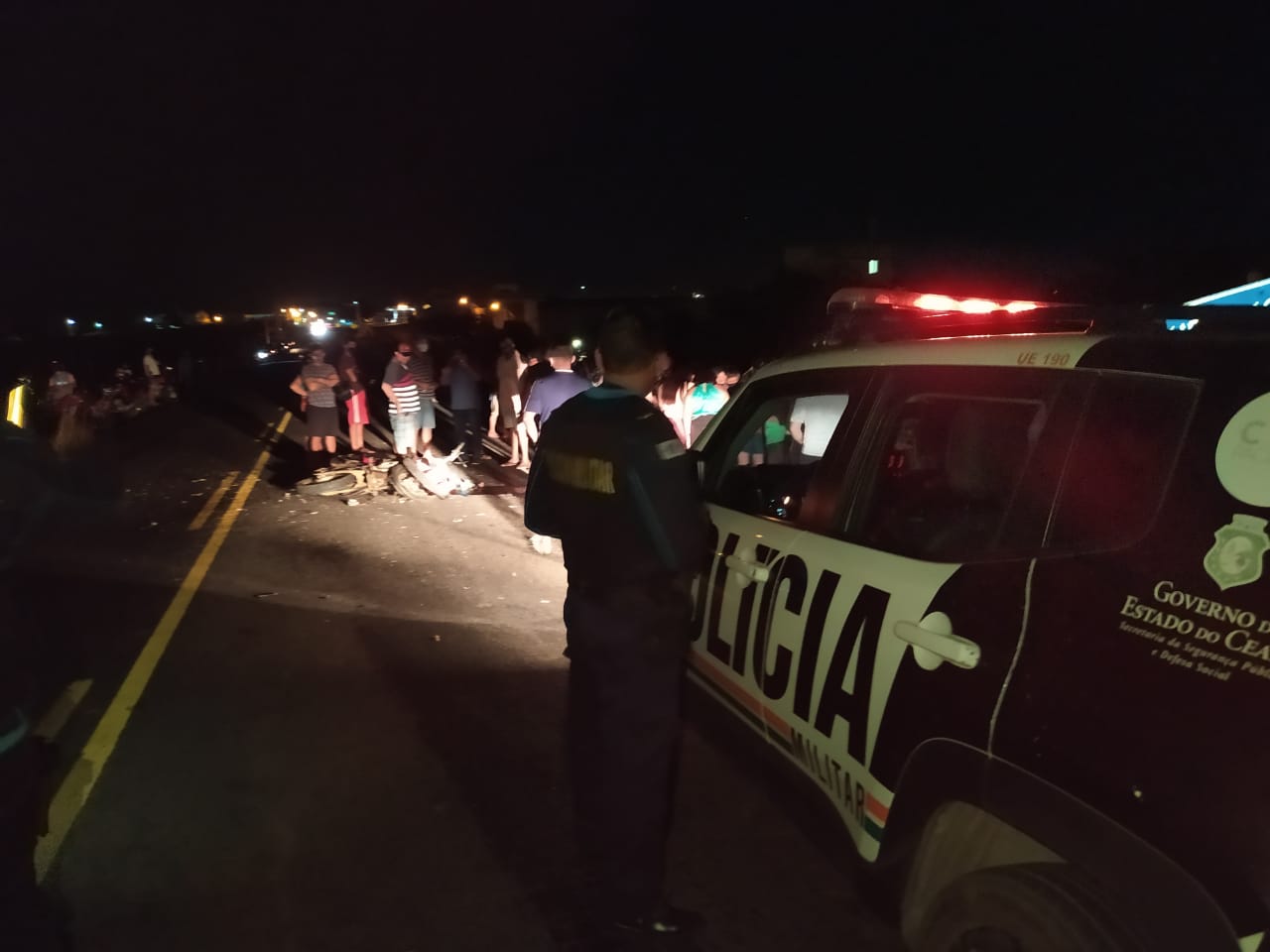 Irineudo, que pilotava uma moto Honda Brós, cor vermelha, placa OSN 2792-Fortaleza, teve morte imediata e seu corpo apresentava múltiplas fraturas.