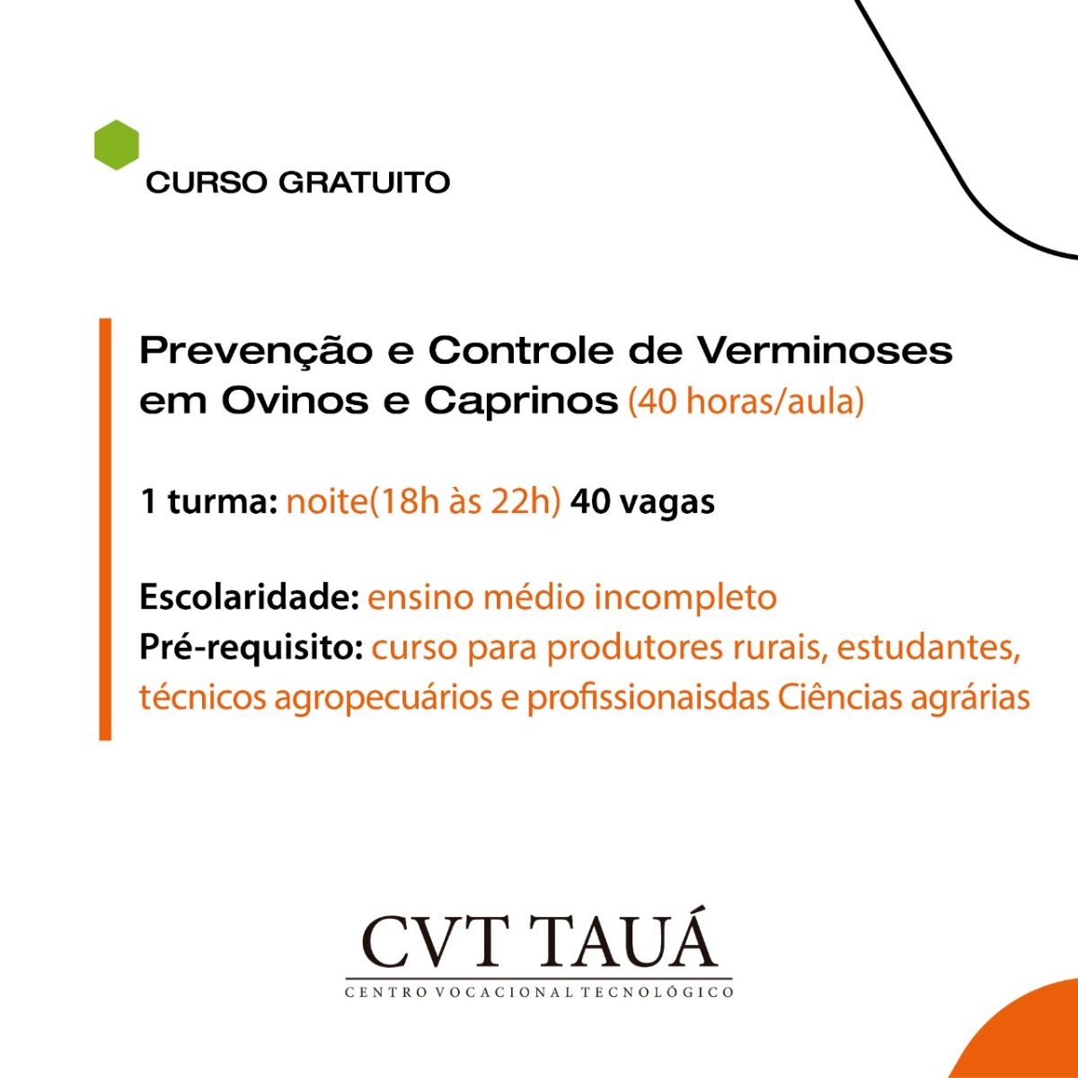 Pré-requisitos: curso para produtores rurais, estudantes, técnicos agropecuários e profissionais das ciências agrárias
