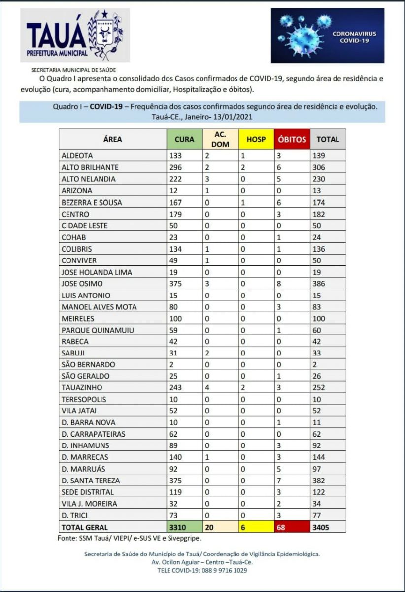 A Secretaria de Saúde do Município atualiza os números da pandemia da Covid-19 em Tauá.