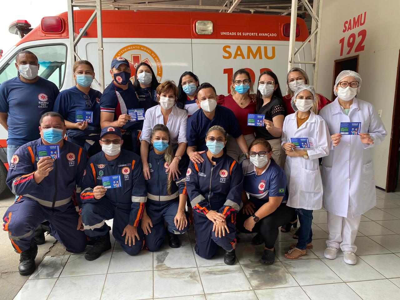 Os profissionais do Samu também começaram a ser vacinados na manhã de hoje(19), a médica Karina Couto, os condutores Juciéber, Fábio, Paulo Élder, e a enfermeira Andressa.