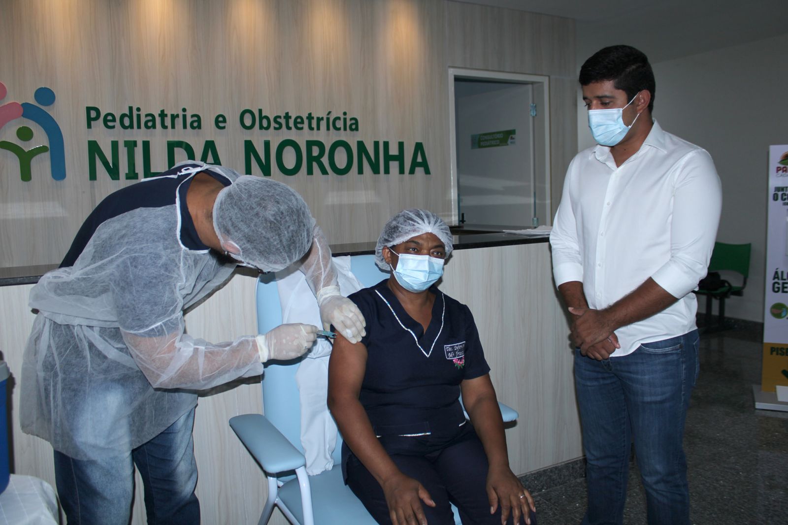 A primeira profissional a receber a vacina, foi a Técnica de Enfermagem Maria Francisca (Bia), seguida de outros profissionais da Saúde.