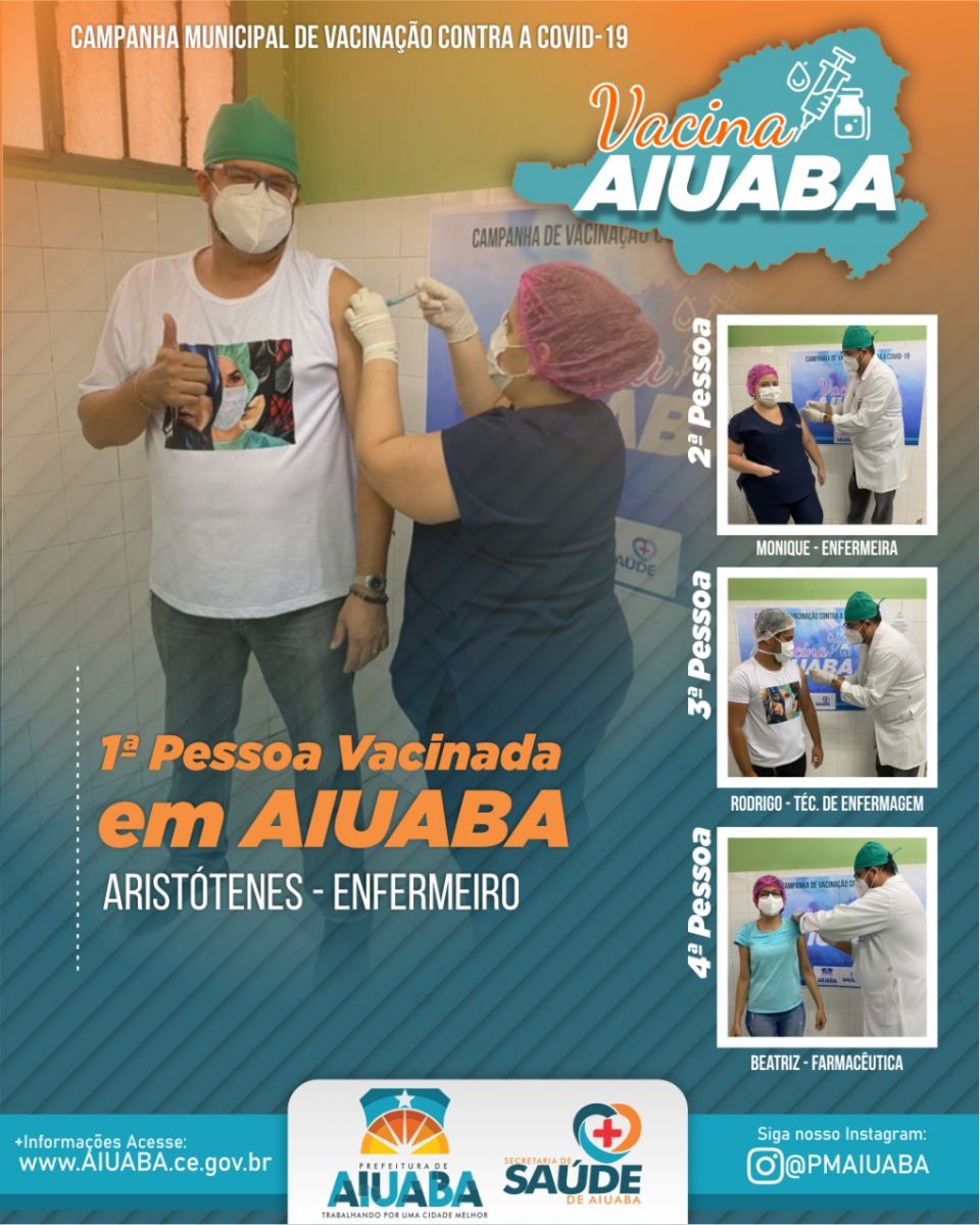 O enfermeiro Aristótenes Farias, foi o primeiro a receber a dose da vacina no Hospital Municipal Nossa Senhora do Patrocínio. Em seguida, foram imunizados a enfermeira Monique Lopes, o técnico em enfermagem Rodrigo Guedes e a farmacêutica Beatriz Feitosa.