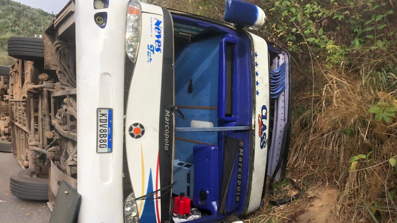 "Eu estava dormindo e acordei sentindo cheiro de queimado. Quando falei que estava fedendo a queimado, automaticamente o ônibus já virou. O nosso medo era de cair dentro da serra, eu estava desesperada", conta a profissional que tem escoriações no braço e no pé.
