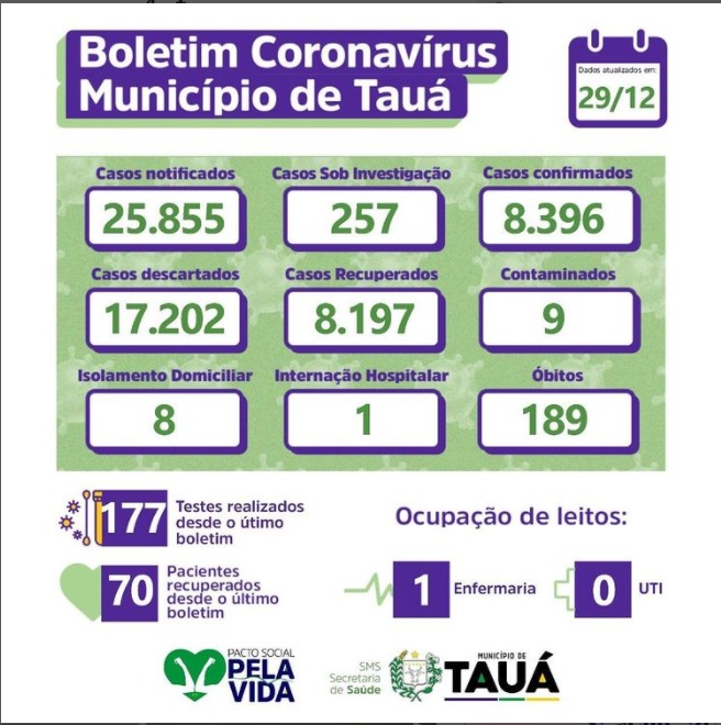 No último dia 29 de dezembro, Tauá tinha 9 pacientes infectados e 257 casos sob investigação. Veja o boletim: