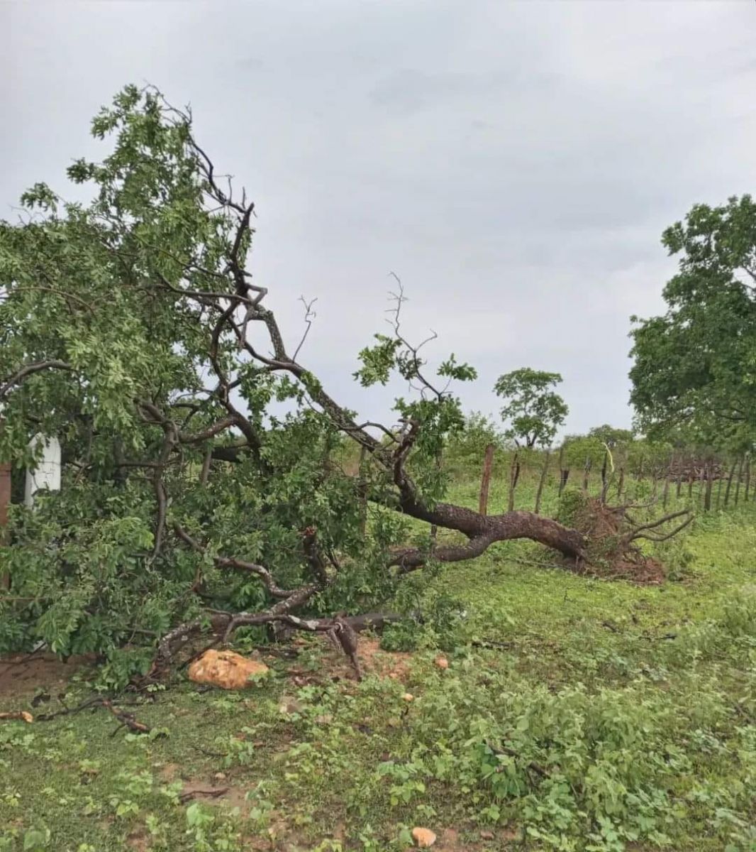 Na localidade de Pedra Rachada, distrito de Carrapateiras, a chuva foi de 50mm e a ventania derrubou pelo menos duas árvores, segundo a sra. Vânia Lima.