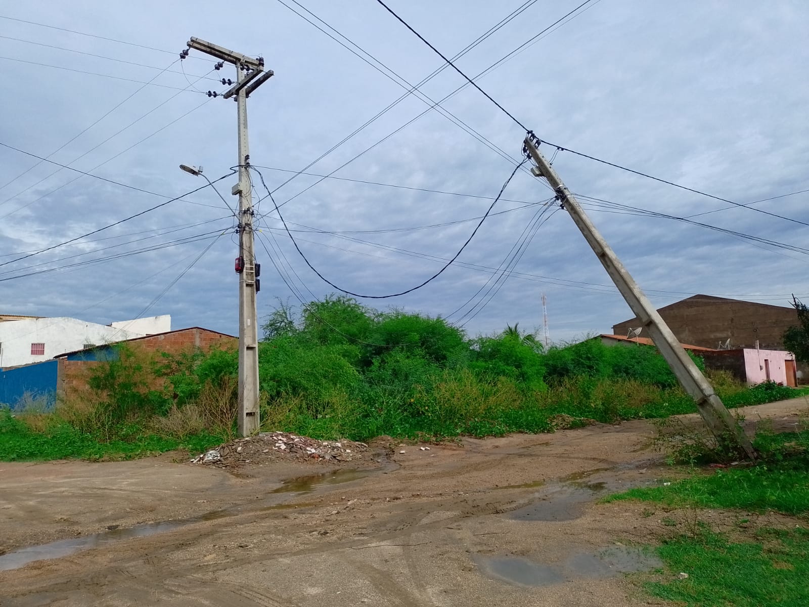 Nas Ruas, Francisco Adelino Sampaio e Maria do Socorro do Carmo Dias, no Bairro São Geraldo, houve queda e danos em postes, deixando moradores em energia elétrica.