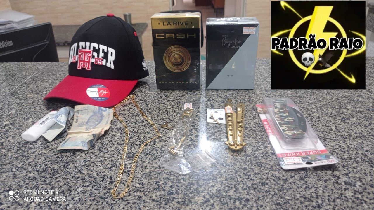 As câmeras de ideomonitoramento da loja registraram a ação do rapaz que furtou perfumes, boné e bijuterias. Com base nas imagens, o CPRaio realizou buscas pela cidade e localizou o suspeito na BR-020, próximo ao posto Ipiranga.